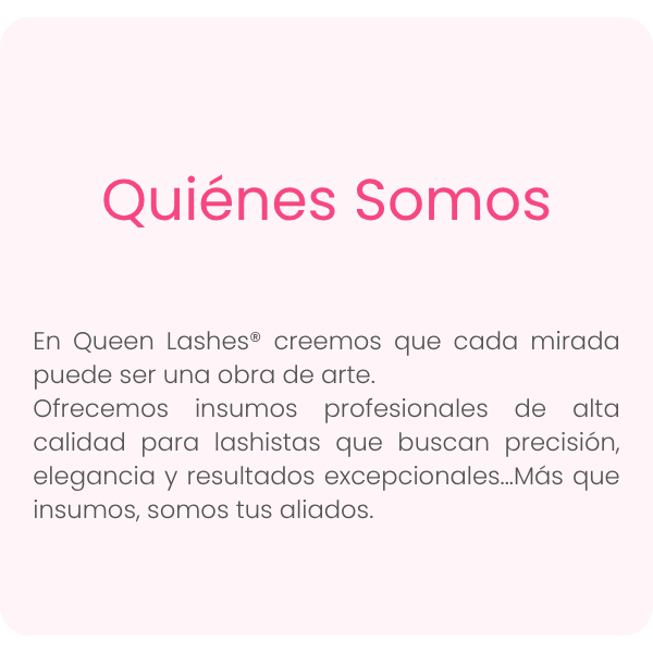 Somos tu aliado profesional. En Queen Lashes, cada insumo es seleccionado con pasión para que tu arte brille y tus clientes queden impresionados con cada trabajo.